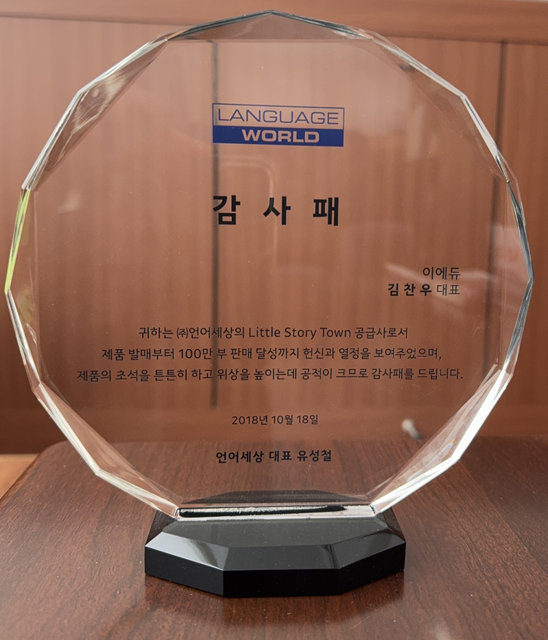 이에듀 언어세상 리틀스토리타운 100만부 달성 감사패